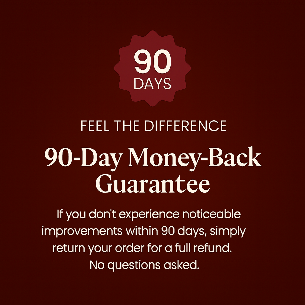 If you do not experience improved energy, better sleep, or enhanced vitality within 90 days, return your bottles for a complete refund. Send them back even if they are empty. No questions asked, no hassles. We are confident this formula works, which is why we take on all the risk so you can try it worry-free.
