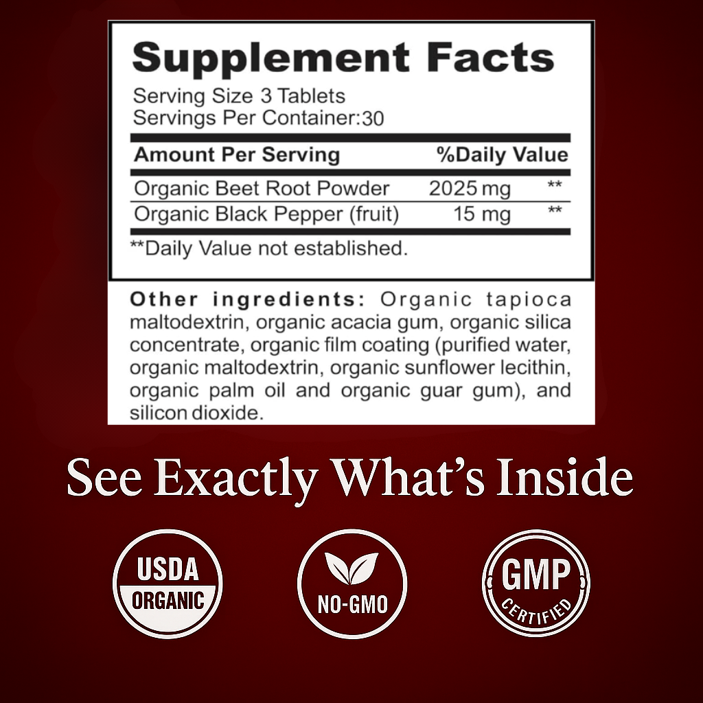 Fermented Beet & Maca is designed for adults experiencing fatigue, hormonal changes, poor circulation, or stress-related symptoms. It's 100% organic, contains no caffeine or stimulants, and is safe for long-term use. If you're pregnant, nursing, or on blood pressure or hormone medications, consult your healthcare provider before starting.